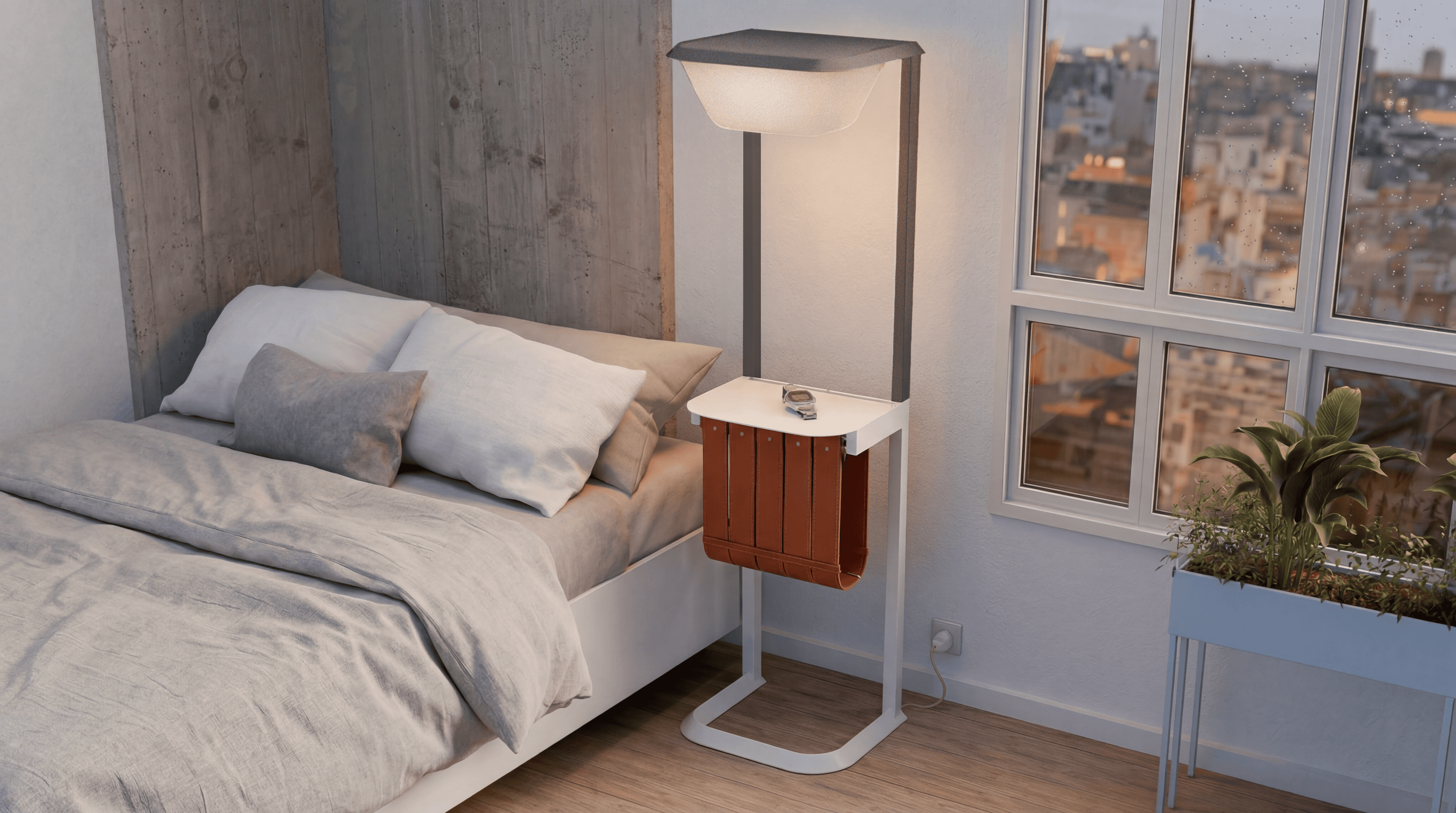 This was my thesis project, where my team and I aimed to apply everything we learned throughout our design studies. The goal was to create a lamp that not only provided indirect lighting but also functioned as a bedside table, merging both functions while exploring a new approach to storage with a strong focus on details. A true 2-in-1 solution.